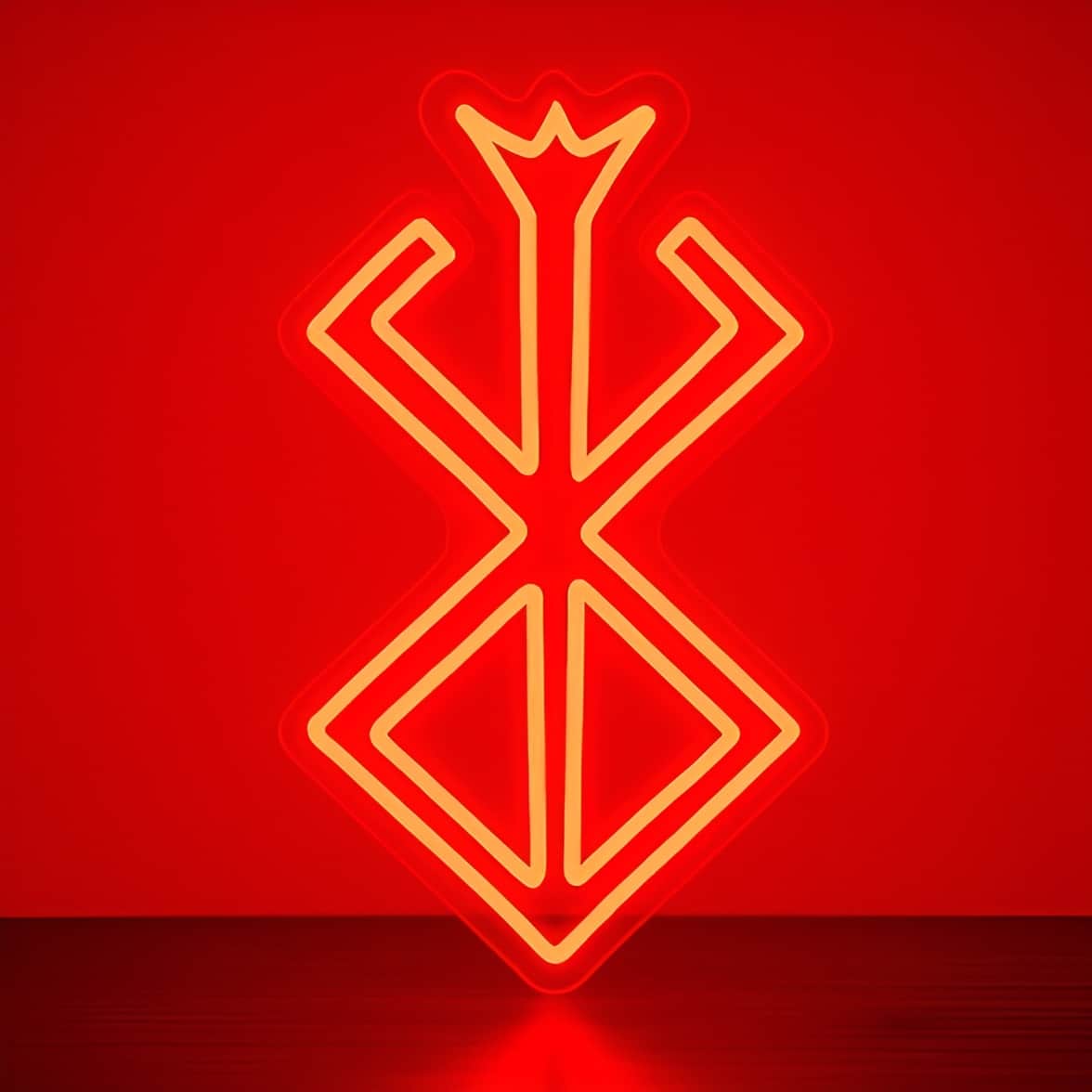 Plongez dans l’univers sombre de Berserk avec ce néon Brand of Sacrifice. Ses lignes géométriques angulaires forment la marque maudite emblématique, parfaite pour les fans de manga.