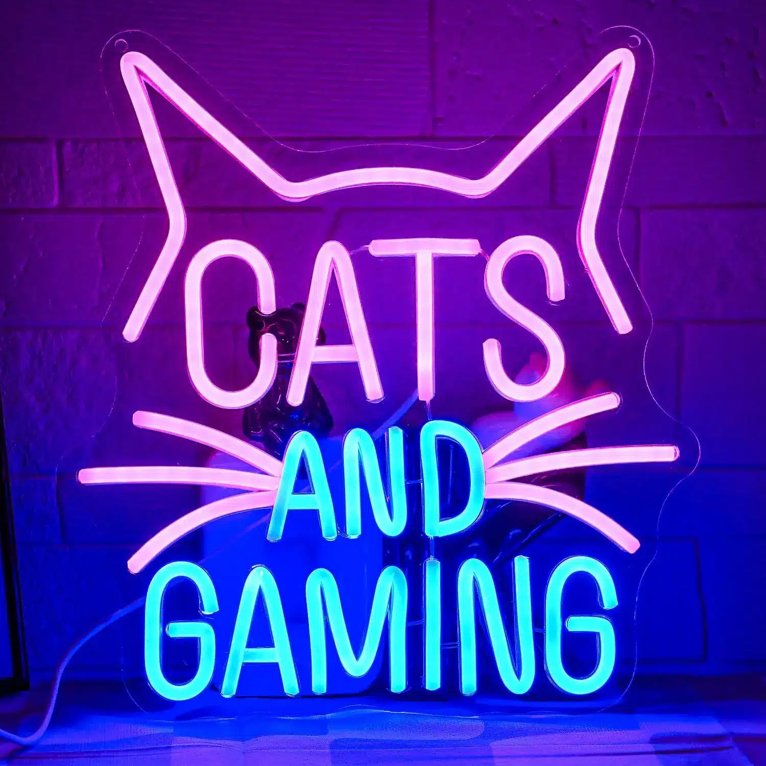 Ce néon s’adresse parfaitement aux gamers passionnés qui partagent leur setup avec leurs compagnons félins, une combinaison très populaire dans la communauté gaming où les chats apparaissent souvent lors des streams et sessions de jeu.