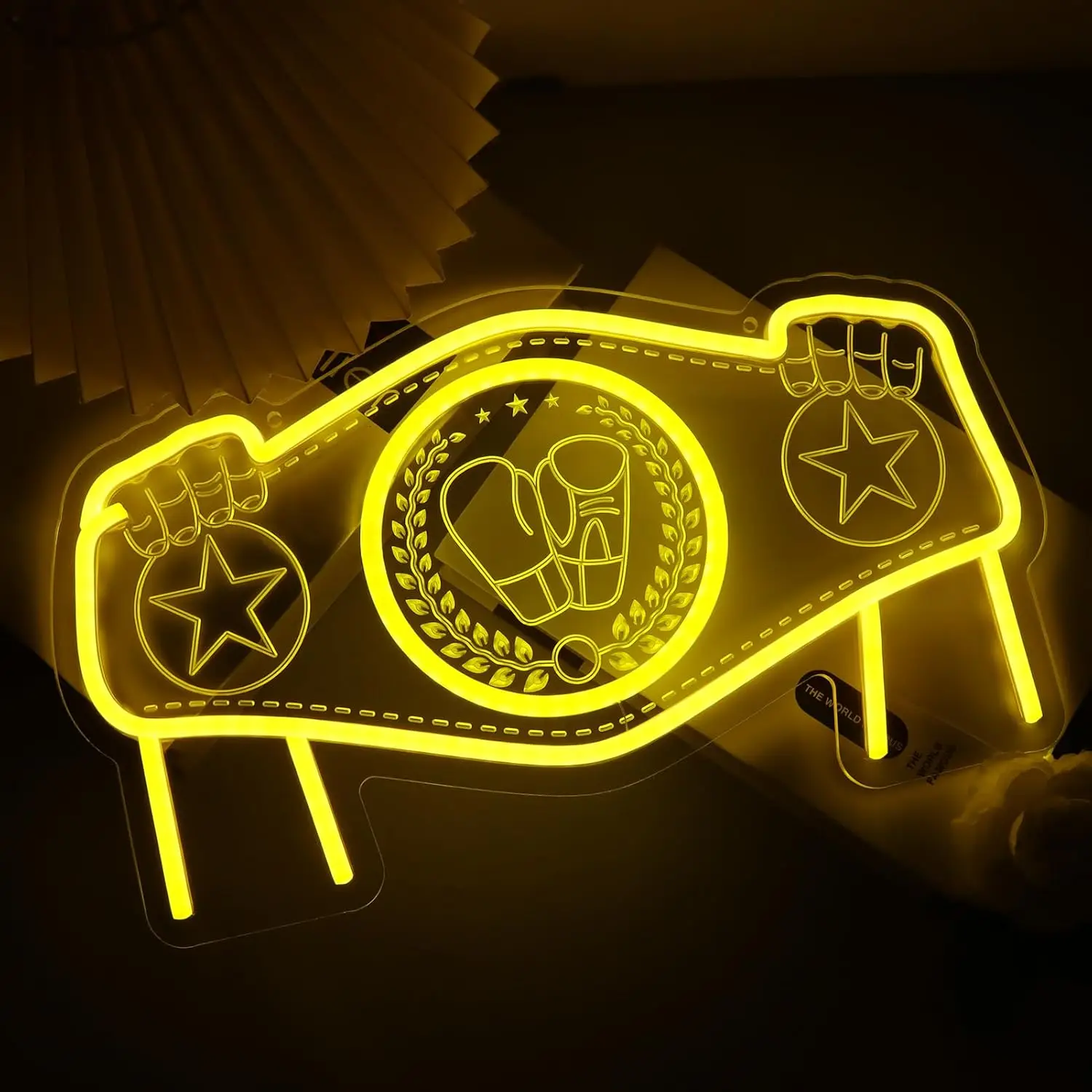 Le Néon Ceinture Champion Boxe s’adresse aux passionnés de sports de combat, aux pratiquants de boxe anglaise, française ou thaï, ainsi qu’aux collectionneurs d’objets décoratifs sportifs.