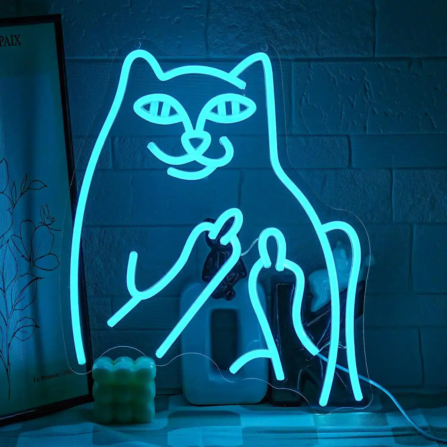 Ce Néon Chat Doigt d’Honneur s’adresse aux amateurs d’art décalé et d’humour irrévérencieux, particulièrement apprécié par les jeunes adultes qui n’hésitent pas à afficher leur côté rebelle.