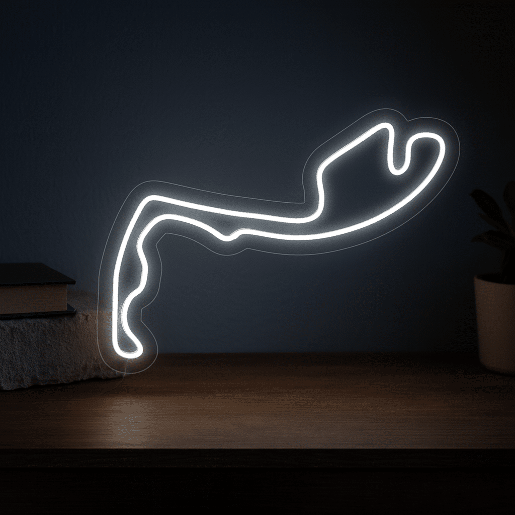 Revivez la magie du Grand Prix de Monaco avec ce néon blanc qui reproduit fidèlement le tracé mythique du circuit monégasque, ses virages emblématiques et sa silhouette serpentine reconnaissable.
