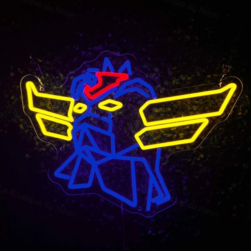 Le Néon Goldorak représente le célèbre robot géant de l’anime japonais créé par Go Nagai, figure emblématique des dessins animés des années 80 en France.