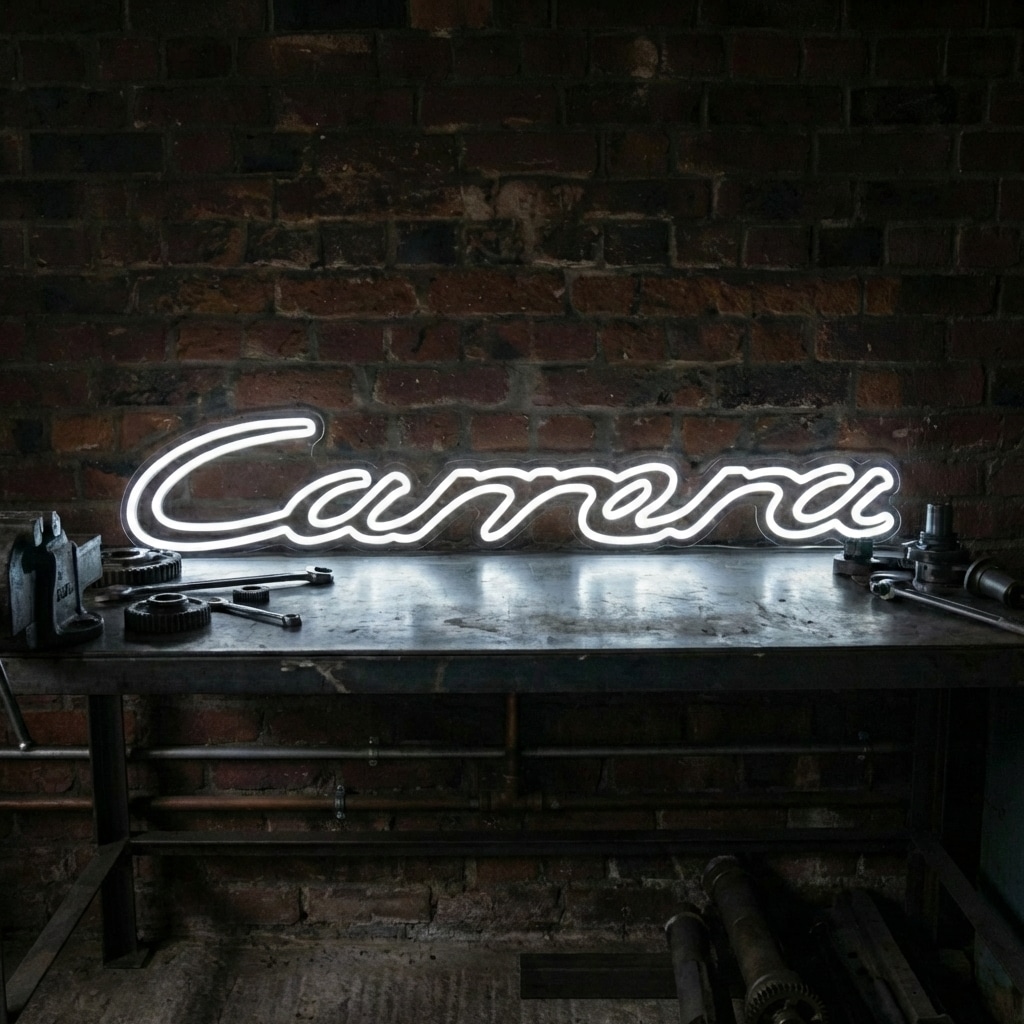 L’écriture fluide et élégante du Néon Porsche Carrera capture parfaitement l’esprit de cette voiture mythique, symbole de performance et de raffinement.